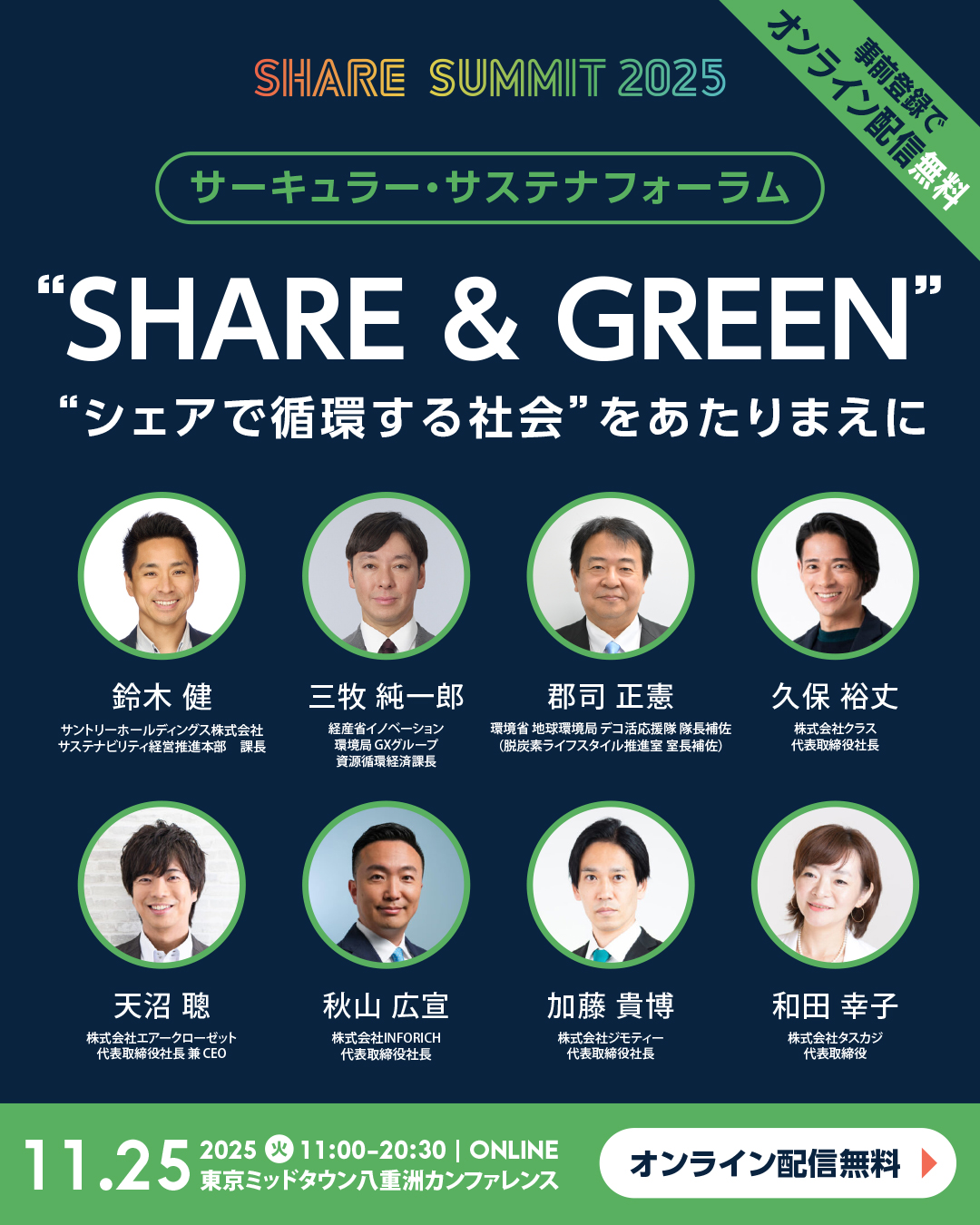 本企画は、政府、自治体、企業、個人等マルチセクターが集い、一度に数千名が参加するビジネスカンファレンス『SHARE SUMMIT(シェアサミット)』(https://sharing-economy.jp/ja/sharesummit/ss2025)内にて実施致します。