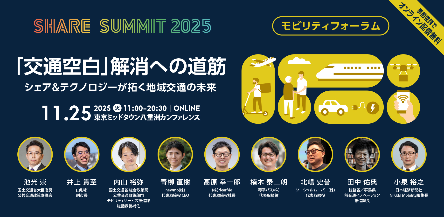 一般社団法人シェアリングエコノミー協会は、2025年11月25日(火)に、東京ミッドタウン八重洲カンファレンスにて、『モビリティフォーラム』を現地&オンラインのハイブリッド形式で開催します。