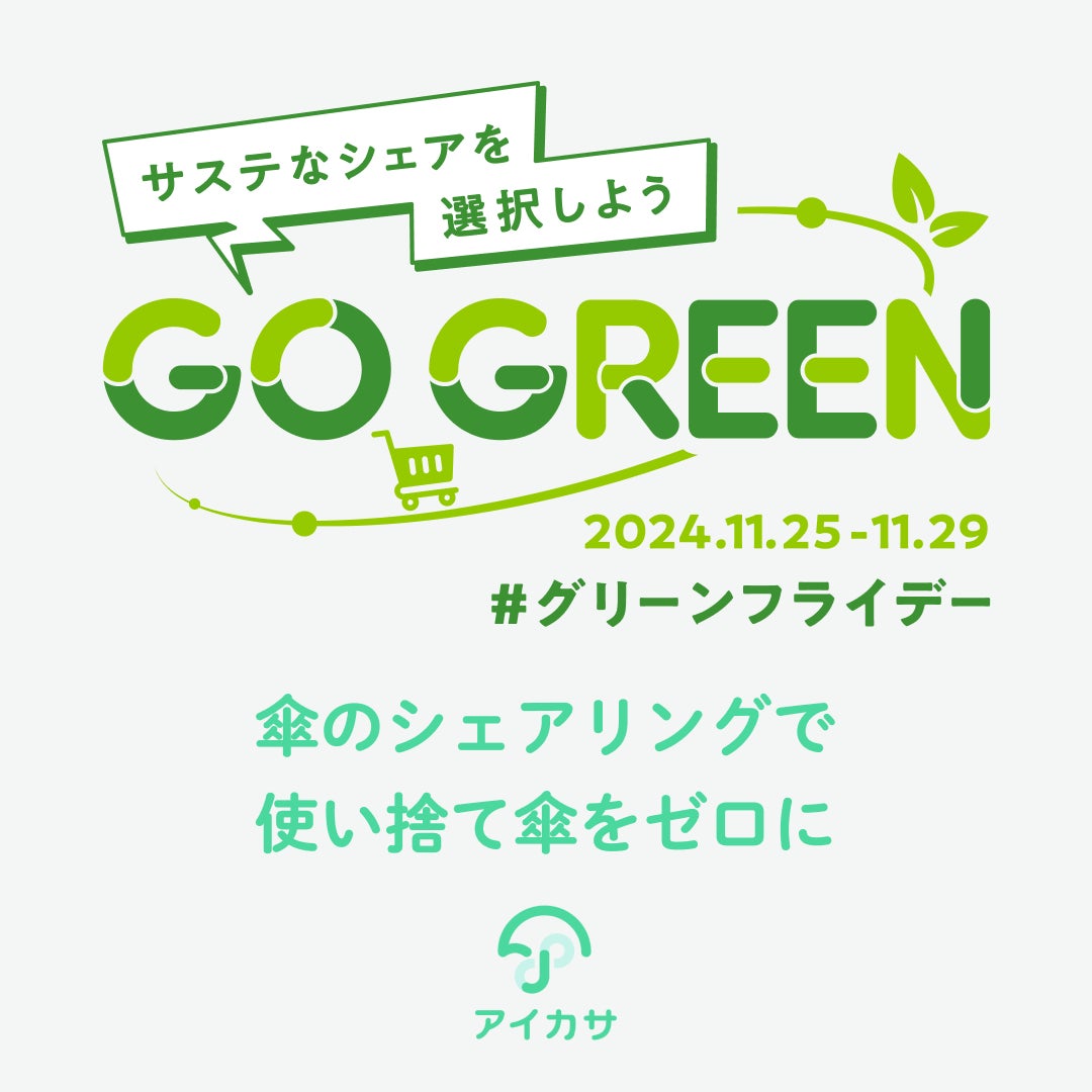 【使い捨て傘ゼロへ】アイカサ、グリーンフライデーに合わせて、ロゴをグリーンにチェンジ!シェアサービス15社とともにサステナブルな消費を推進。