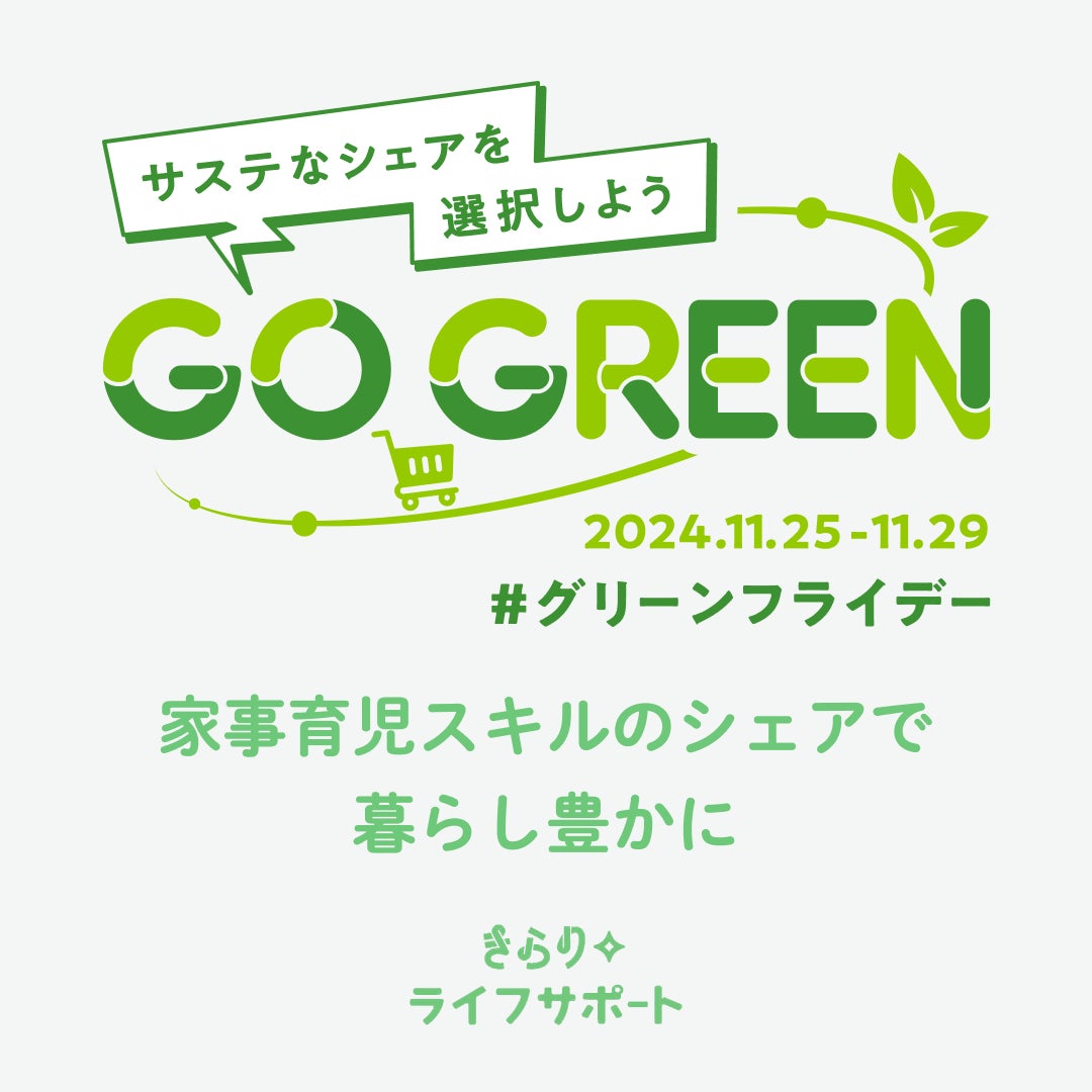 【家事育児スキルをシェア】きらりライフサポート(旧:東京かあさん)、「GO GREENプロジェクト」に参画