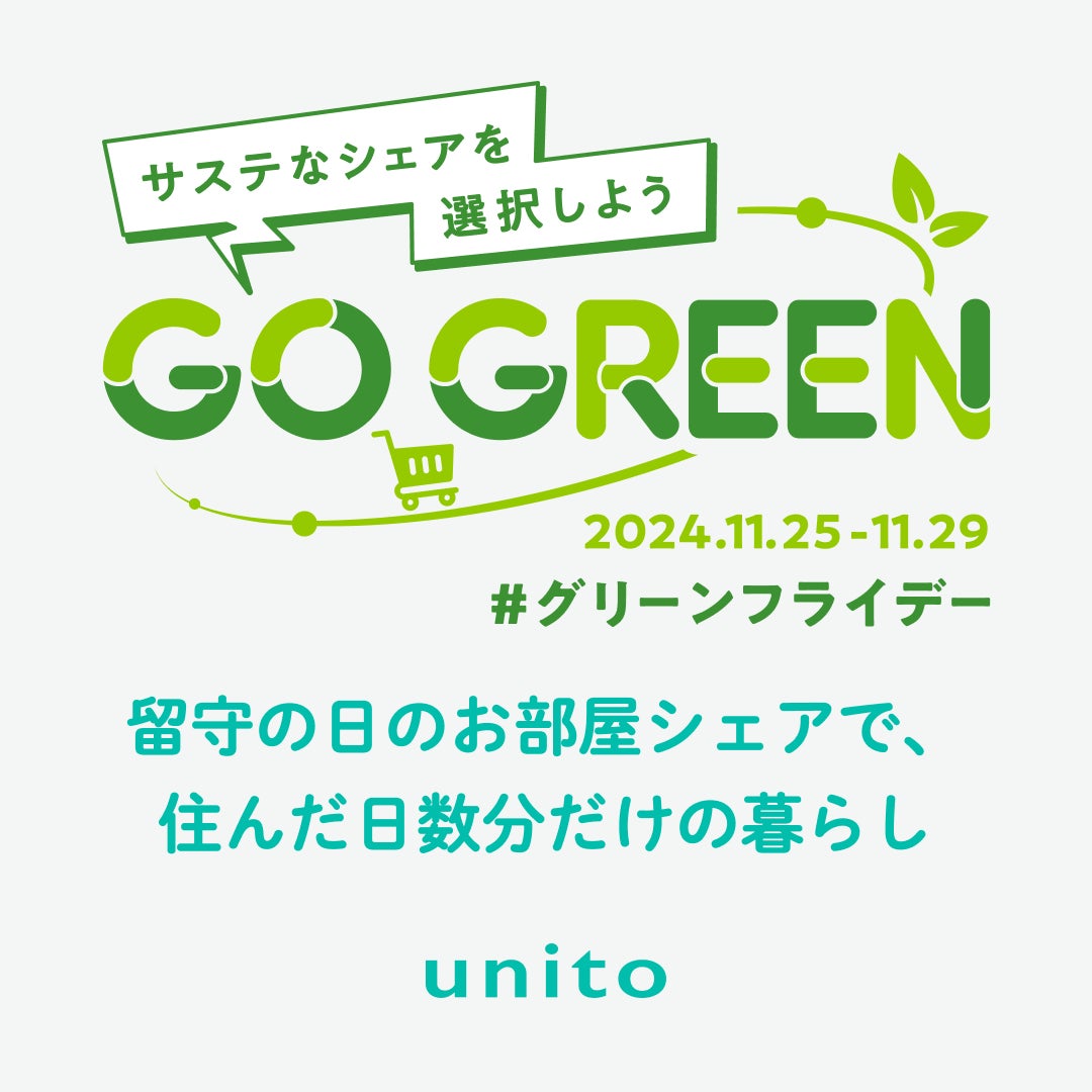 Unito(ユニット)、サステナブルな消費を促す「グリーンフライデー」に合わせて、シェアリングサービス事業社15社と共にロゴをグリーンへチェンジ!